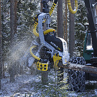 The 30RH-II is heavier and more robust head for track-based harvesters and excavators up to 25 tons. It has, like the 28RH-II, four delimbing knives, and it can be equipped with whether 2WD or 3WD synchro-feeding.