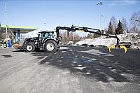 The latest tractor package consists of a Valtra T174 Direct tractor and a rear bridge mounted KESLA 316T loader. JAKE's chassis adapter has been used for the rear bridge installation. The net lifting torque of the loader is 52 kNm, with a lifting capacity of 1370 kg (4 m) and with an outreach of 8.8 m – it is a very strong and big assistant. The yield of 200 l/min from the tractor is easily enough for such a big loader as the loader’s requirement for hydraulic oil is 110 to 140 l/min when attaching the LS control volume system.