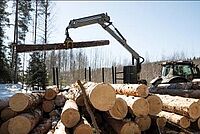 In the loader-trailer combination Juha Mönkkönen appreciates especially the traction. In the picture: the local area bulky wood is being transported.