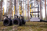 The new forestry trailers continue with the same one-beam construction line that has proven to be good and reliable in the previous models. The biggest trailers (144 series) can for the first time be equipped with forwarder bunks, so familiar from forwarders (as an accessory). This increases the suitability especially the nave drive models for professional forwarder tasks. Stakes of all the models are stronger than before and coloured yellow, which makes them more visible.