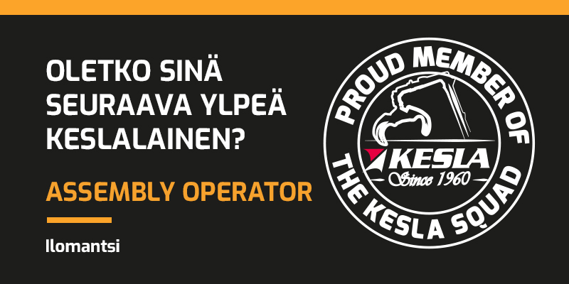 Meillä on haussa ylpeään joukkoomme määräaikaiseen työsuhteeseen Assembly Operator eli kotoisammin kokoonpanoasentaja. Olet tärkeässä roolissa, kun tuotamme elintärkeitä komponentteja maailmallakin mainetta niittäneisiin KESLA materiaalinkäsittely- ja metsäkoneisiin.