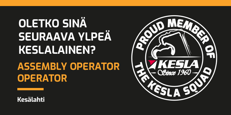 Meillä on haussa ylpeään joukkoomme Assembly Operatoreita eli kotoisammin kokoonpanoasentaja sekä puunkorjuu- että traktorivarustepuolelle. Olette tärkeässä roolissa, kun teemme maailmallakin mainetta niittäneitä KESLA materiaalinkäsittely- ja metsäkoneita.