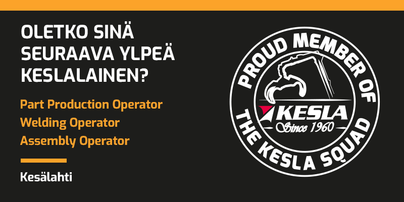 Meillä on haussa ylpeään joukkoomme Part Production Operator, Assembly Operator tai Welding Operator eli kotoisammin osavalmistaja ja vielä tarkemmin särmääjä, kokoonpanoasentaja tai hitsaaja. Olette tärkeässä roolissa, kun teemme maailmallakin mainetta niittäneitä KESLA materiaalinkäsittely- ja metsäkoneita.